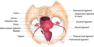 Figure 2. Anatomic drawing showing a superoanterior view of the female pelvis and the suspensory ligaments of the uterus. (Kaniewska et al., 2018).